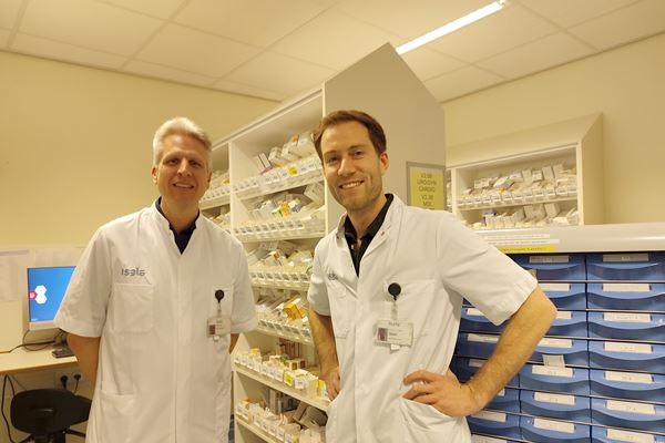 Tot voor kort verdwenen in de afvalton bij Klinische Farmacie in Isala maandelijks meer dan 20.000 tabletten. Dat was medicatie die terugkwam van verpleegafdelingen. Ziekenhuisapothekers Peder Nygård en Douwe van der Meer: ‘Het werd altijd gedaan uit veiligheid. Dat is natuurlijk belangrijk, maar ook in de ziekenhuisapotheek willen wij duurzamer werken. Nu gooien wij medicijnen die terugkomen van een afdeling niet meer standaard weg, maar leggen ze terug in de voorraad. Wat blijkt, negentig procent minder verspilling.’
